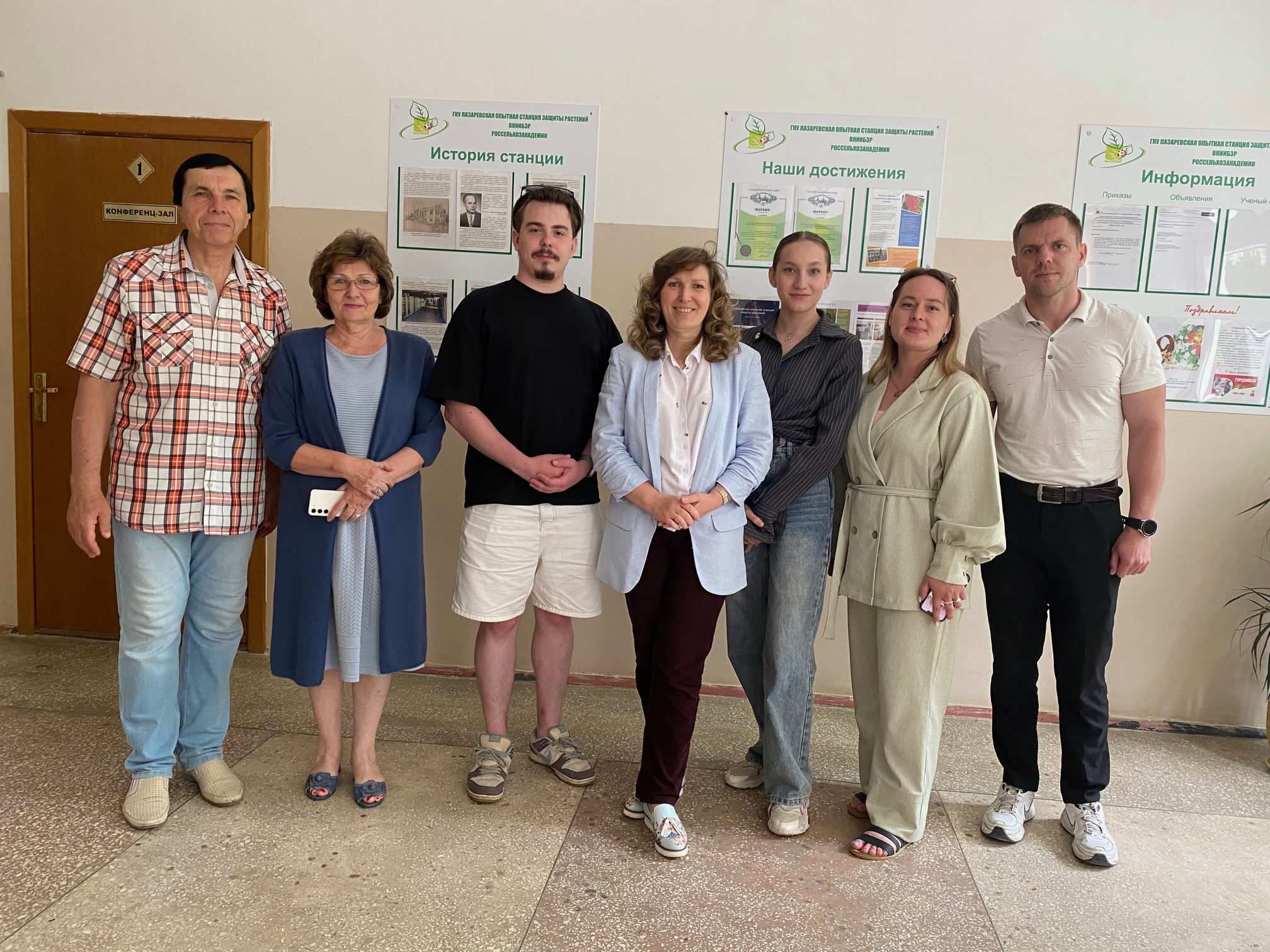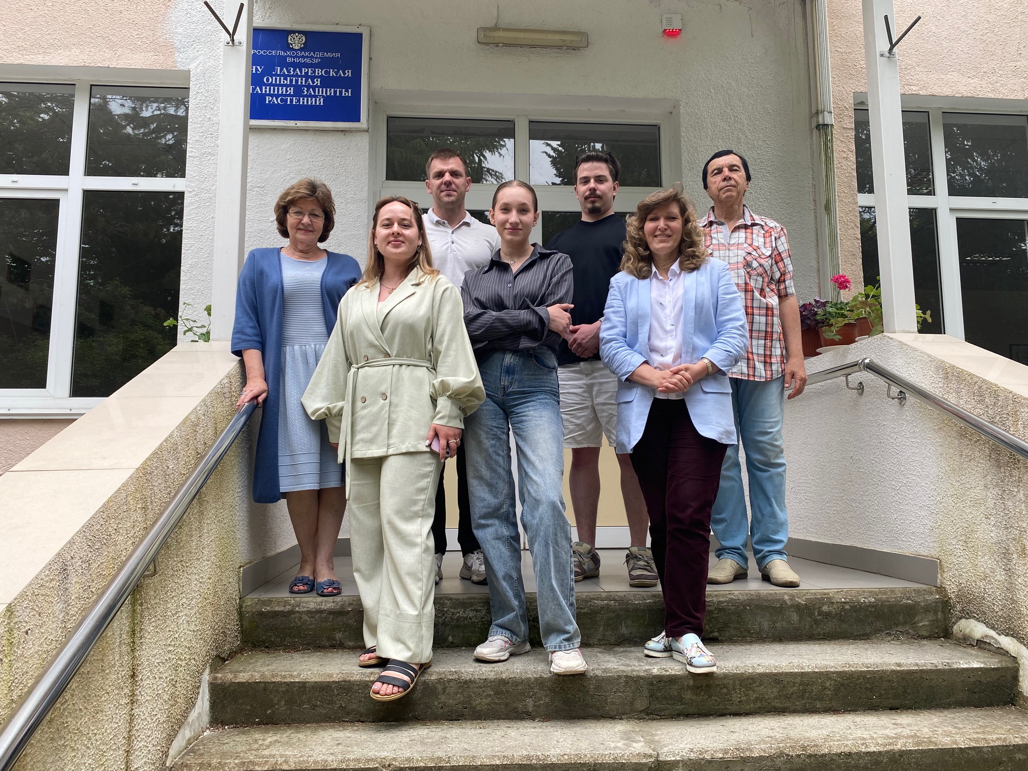 В дружественной обстановке прошла встреча сотрудников Лазаревской опытной станции защиты растений (г. Сочи) и представителей ФГБНУ ФНЦБЗР (г. Краснодар) Асатуровой А.М., Сумарокова В.С., Бондарь Н.Е., Кураев А.В. Были рассмотрены ряд текущих вопросов информационно-организационного отдела, образовательной деятельности, административно-хозяйственных, особенности работы научного персонала в летний сезон, повышения квалификации, охраны труда, проведения научно-популярных мероприятий и профориентации для подрастающего поколения. Бугаева Л.Н., Игнатьевой Т.Н. были вручены награды Российской академии наук, Министерства науки и высшего образования РФ, Администрации Краснодарского края, сотрудникам принявшим участие в работе XII Международной научно-практической конференции «Защиты растений от вредных организмов» Кубанского государственного аграрного университета им. И.Т. Трубилина.